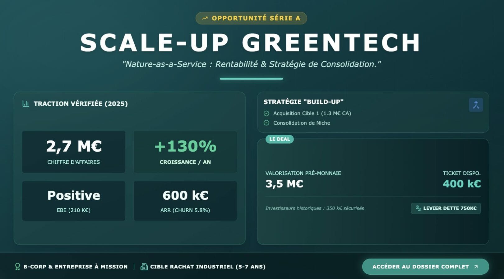 Chers membres et partenaires investisseurs Cleantech Business Angels, Dans le cadre du dealflow de Cleantech Business Angels, nous avons le