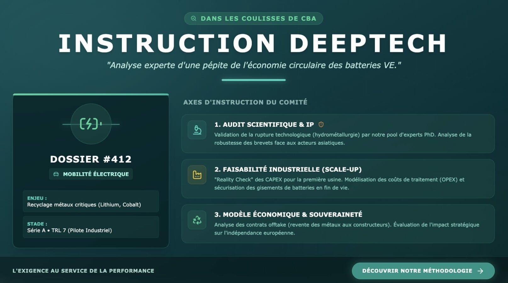 - Traction & Validation : L’entreprise génère déjà ses premiers revenus (44 k€), possède un brevet sur sa méthode de monitoring et bénéficie du soutien de la Bourse French Tech. Preuve de sa pertinence, la solution est intégrée au hub d’économie circulaire d’une co-entreprise alliant un géant automobile européen et un leader mondial du recyclage. Un tour de table d’amorçage (Seed) est en cours de structuration.